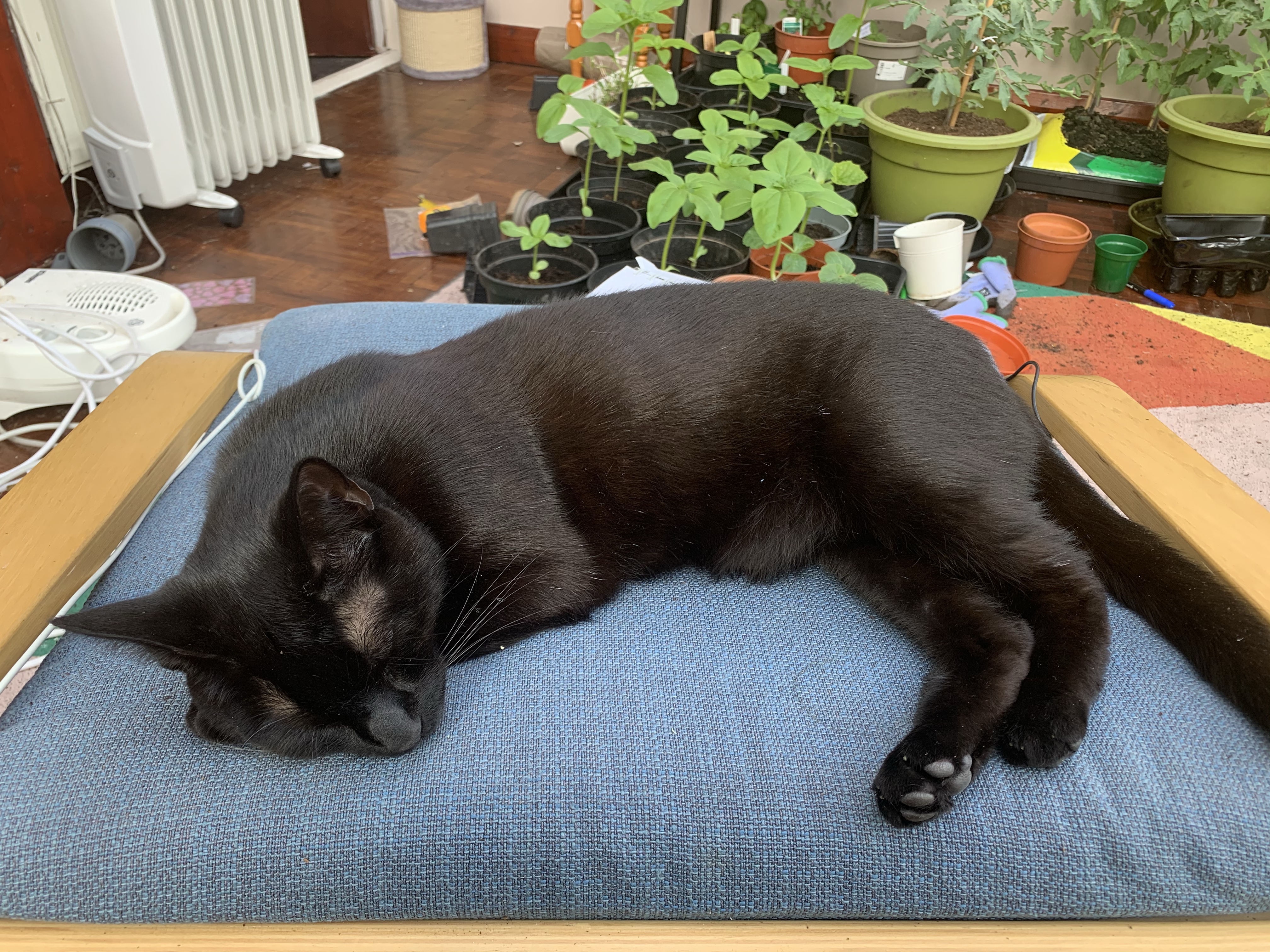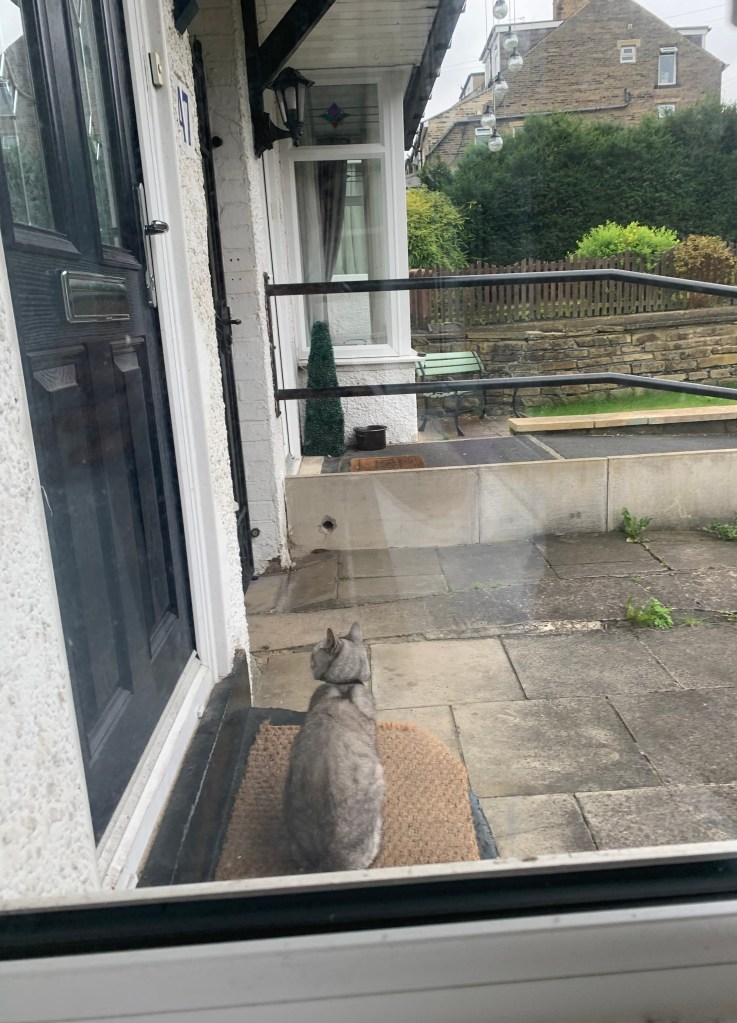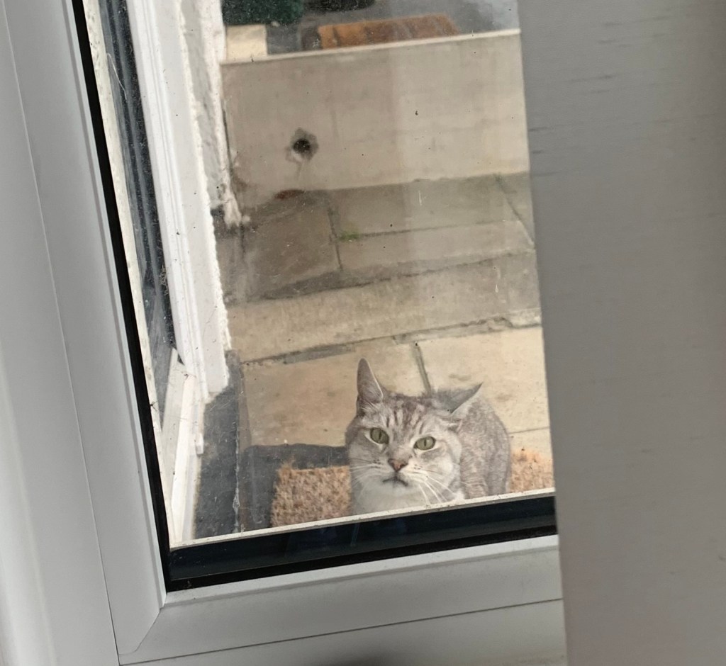 The cat, who at this point has only met me and my bubble, streaks off upstairs to hide under my bed.